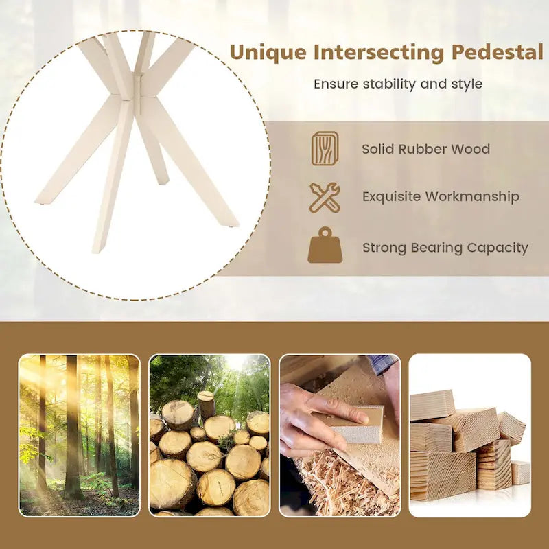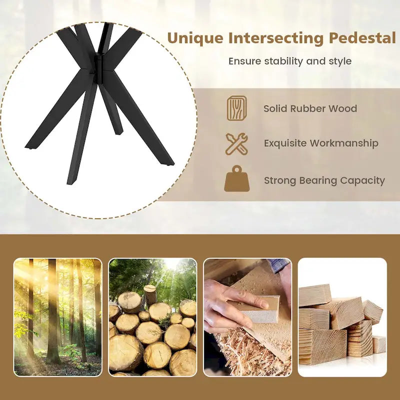 Elevate your dining experience with this chic dining table, which features a sleek faux marble tabletop. The solid wood legs in a unique intersecting structure boasts unparalleled support and exceptional bearing capacity for years to come. More details facilitate daily use. For example, the adjustable foot pads ensure added stability. Measuring 36 inches, the kitchen table comfortably seats 2-4 people and is perfect for intimate family meals or cozy gatherings. Not only does it make a fabulous centerpiece for your board games and puzzles, but it also adds a touch of elegance to kitchen, dining room or even cafe. Dont miss out on this exquisite piece that brings sophistication to every occasion!
