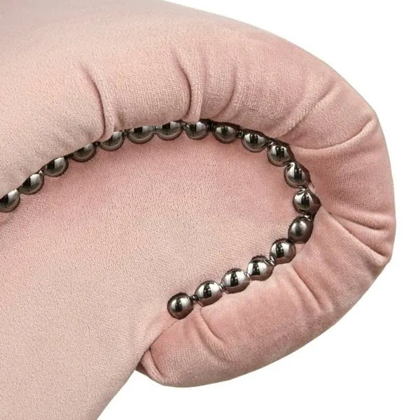 Lounge in glam style with the Marcella chaise from Simple Living. The plywood frame features a scrolled seat back, soft foam fill, timeless button tufting, and detailed nailhead trim. Choose from five velvet upholstery colors to complement your classic decor.